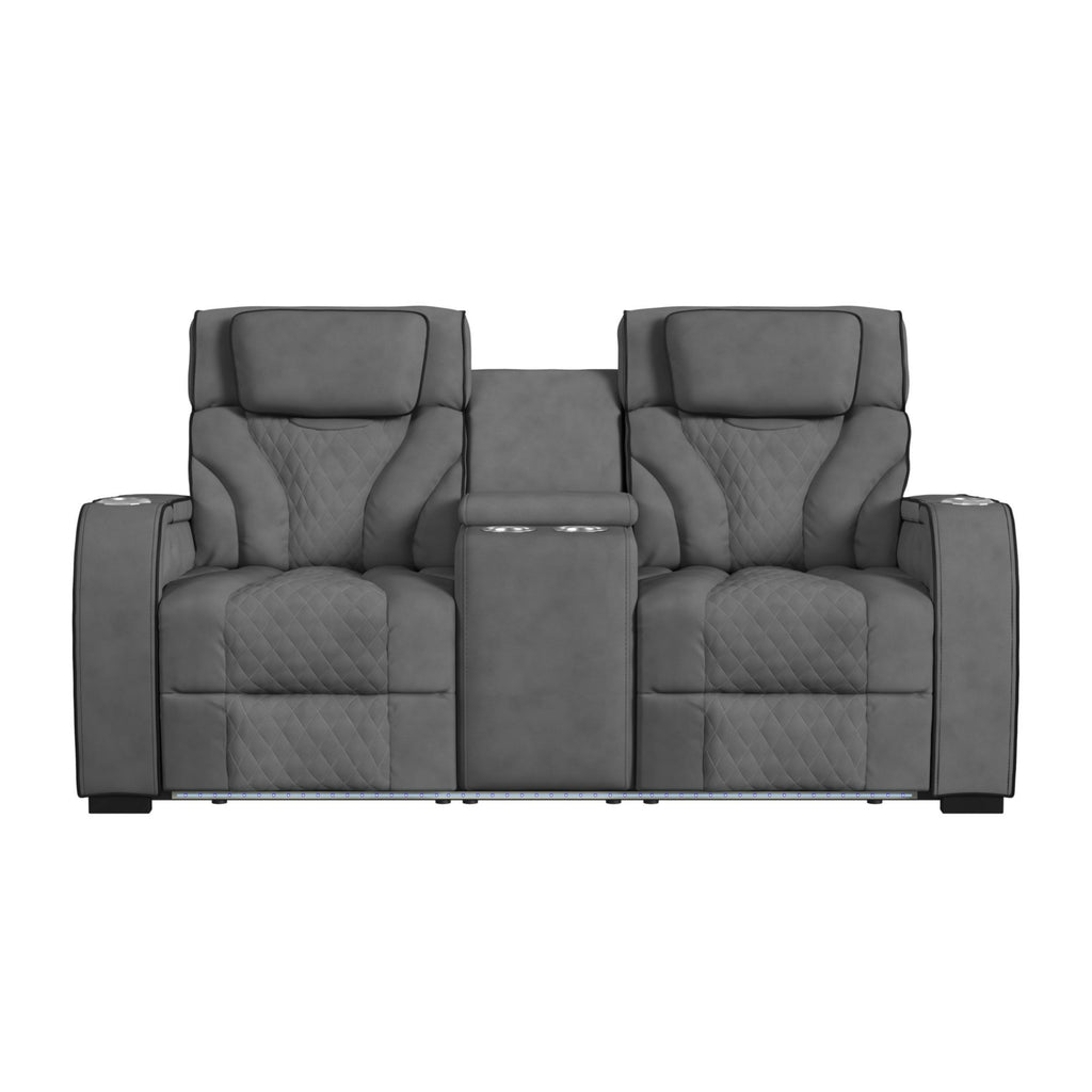 Blitz - Motion Loveseat With Console, And LED - Simba Slate And Black Welt 74.0"W x 39.0"D x 41.0"H - 192.0 lb