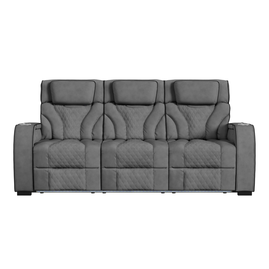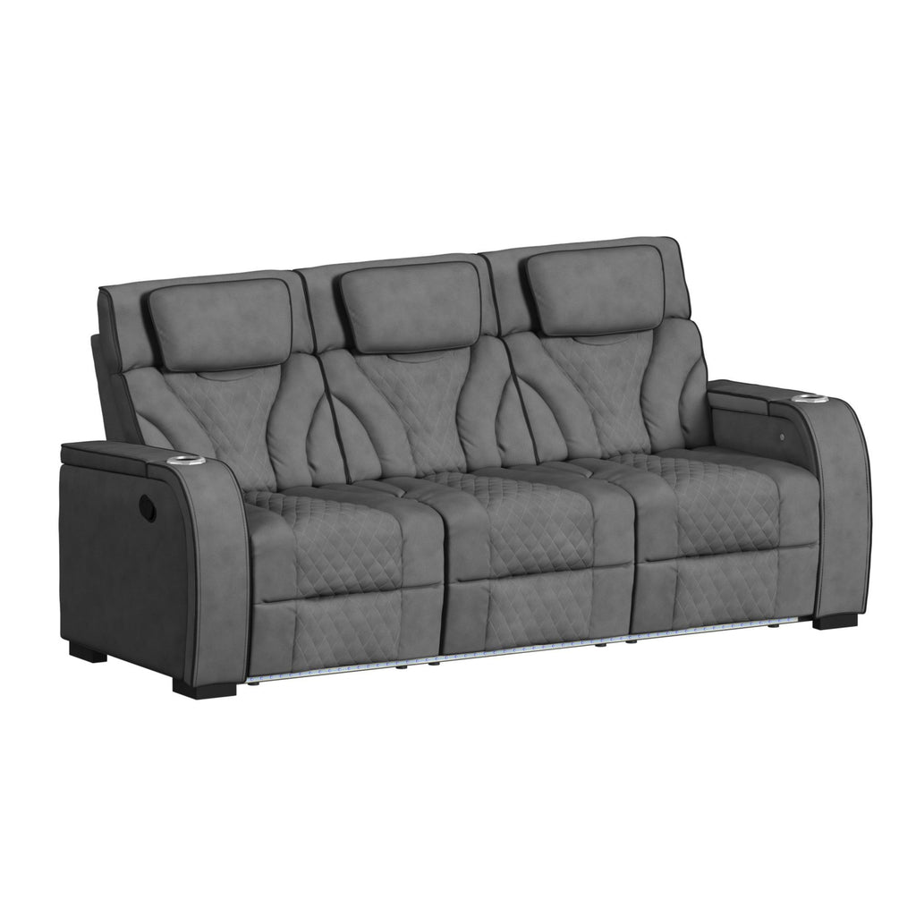 Blitz - Motion Sofa With DDT, Reading Light, Wireless Charger And LED - Simba Slate And Black Welt