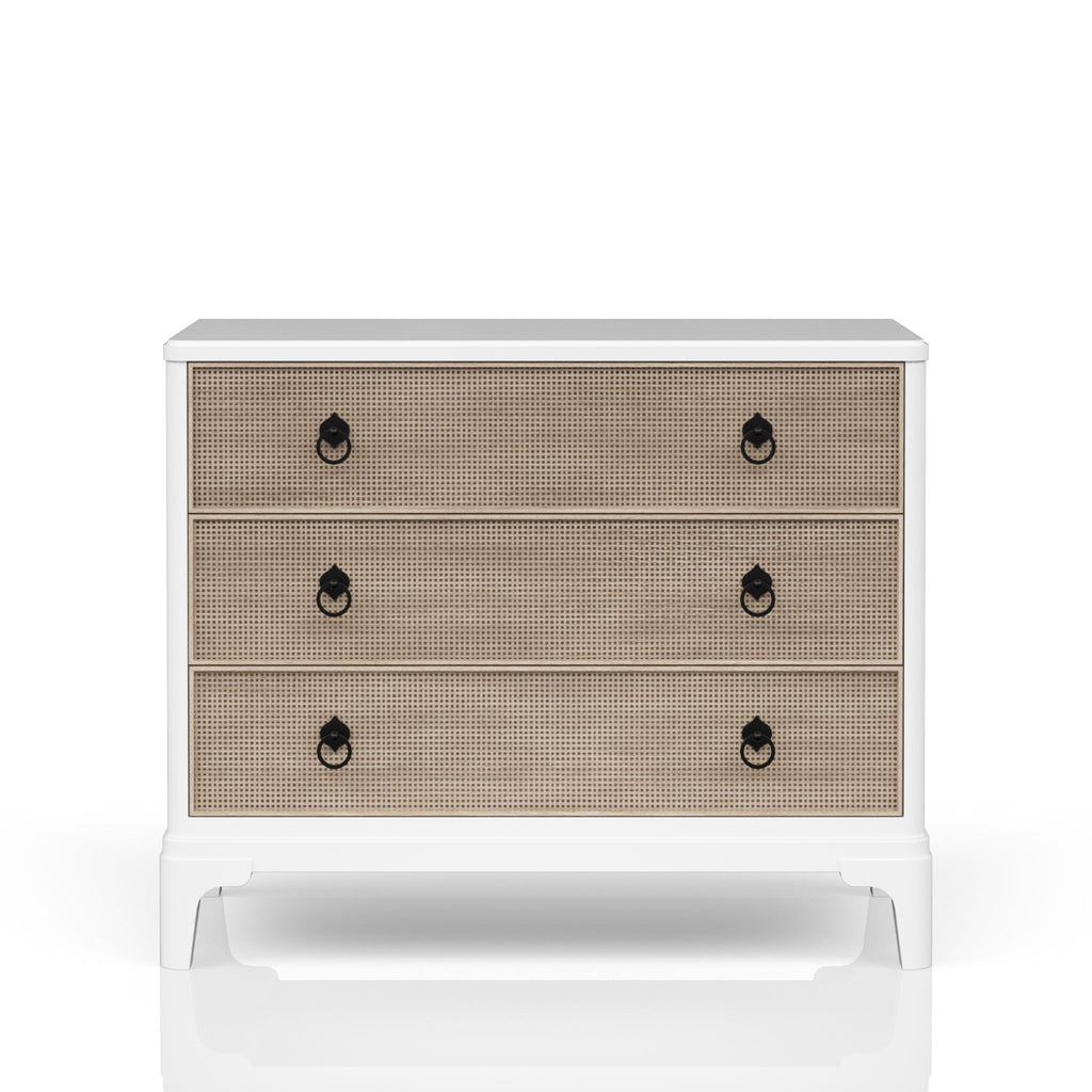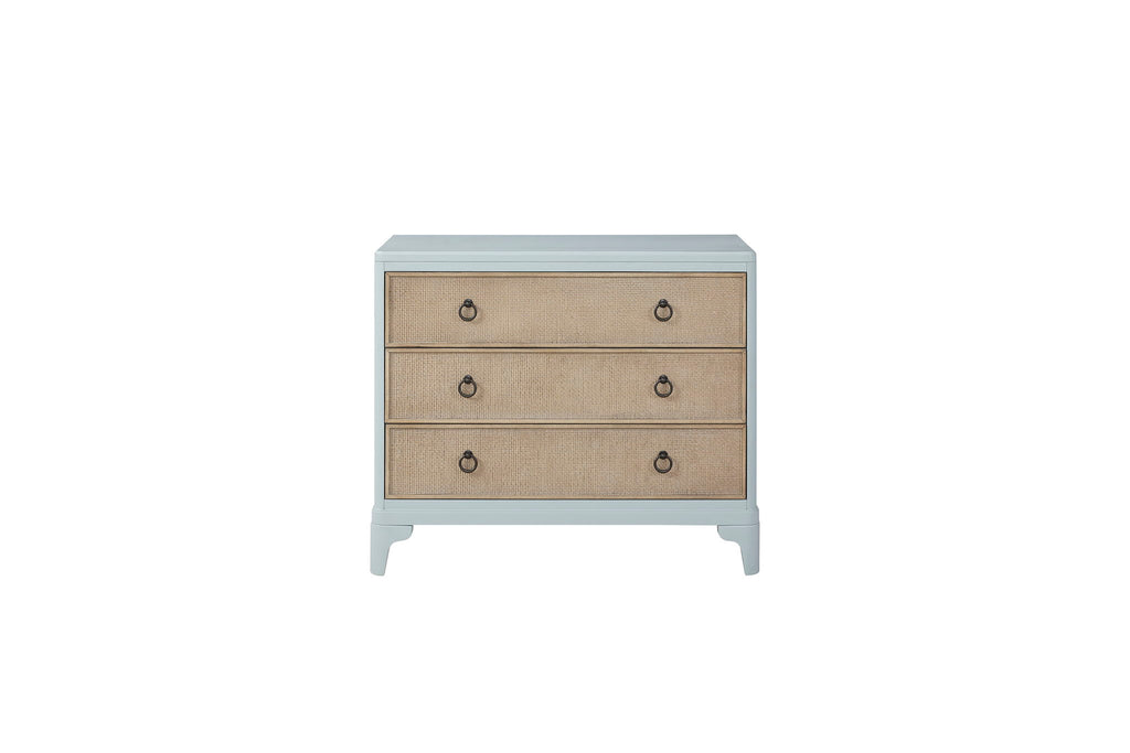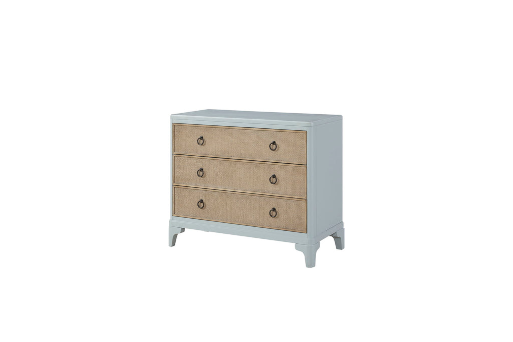 Introducing the Citrus Heights Hall Chest, a timeless piece that combines sophistication with practicality. Crafted with meticulous attention to detail, this hall chest features a refreshing color finish that breathes new life into any space. Made from high-quality Mindi veneers, it boasts durability and elegance in equal measure. The standout feature of this hall chest lies in its distinctive cane face drawers, adding a touch of organic texture and visual interest to its design. With three spacious storage drawers, this chest provides ample room to organize and stow away various belongings, keeping your space clutter-free. Designed for both style and functionality, the Citrus Heights Hall Chest features a wire-brushed finish that enhances its transitional Casual Elegance aesthetic