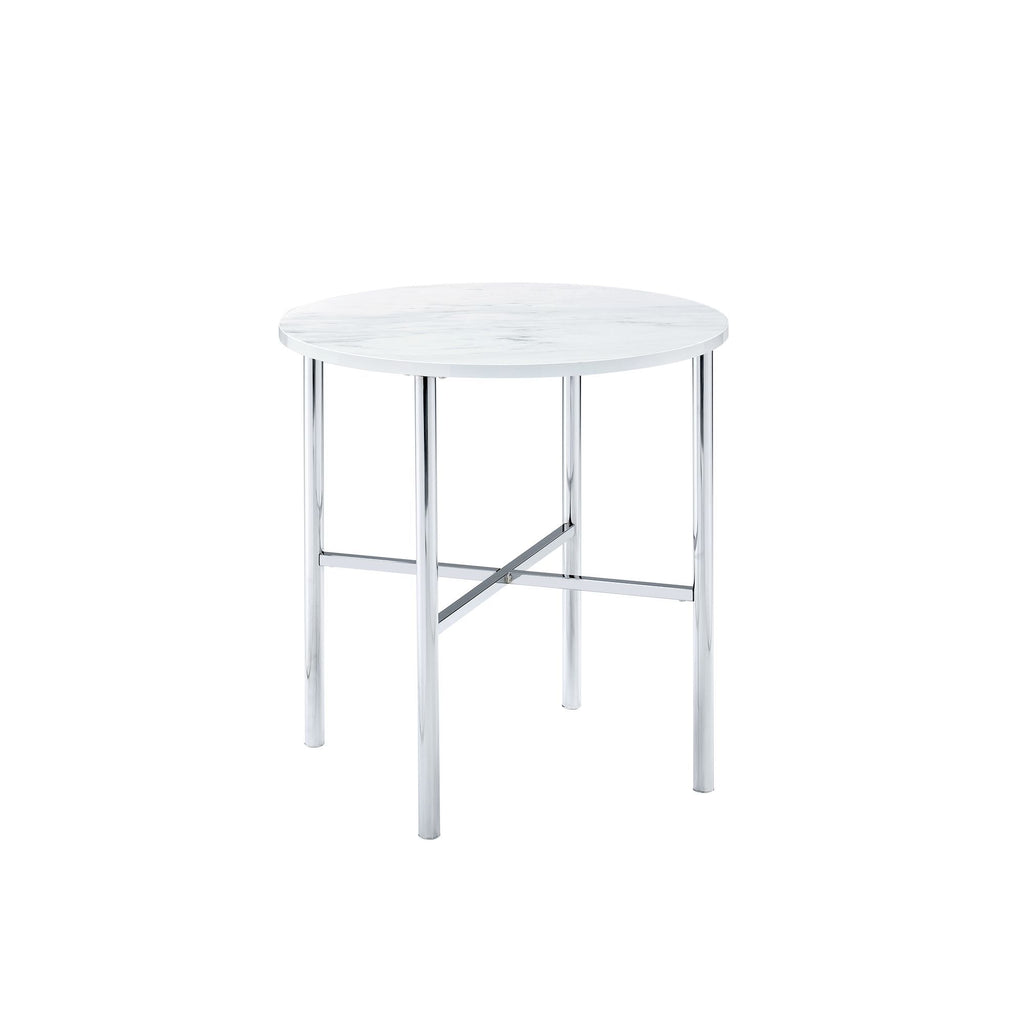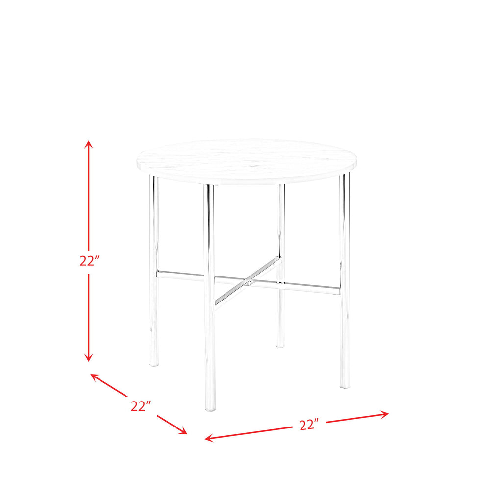 The Cyrus 3PC Occasional Table Set is a must have piece for your living area. Glam begins here, with one coffee table and two end tables in this set. The tables showcase sleek chrome metal legs and a faux marble top. The round shape of the table top and the cross base provide quality stability of this piece. Add a mirrored lamp to the end tables, so the beauty of this set and shine through. Also, the chrome legs will shine against any flooring color and provide that kiss of glam in your space. Turn the lights on and let this glam set shine!