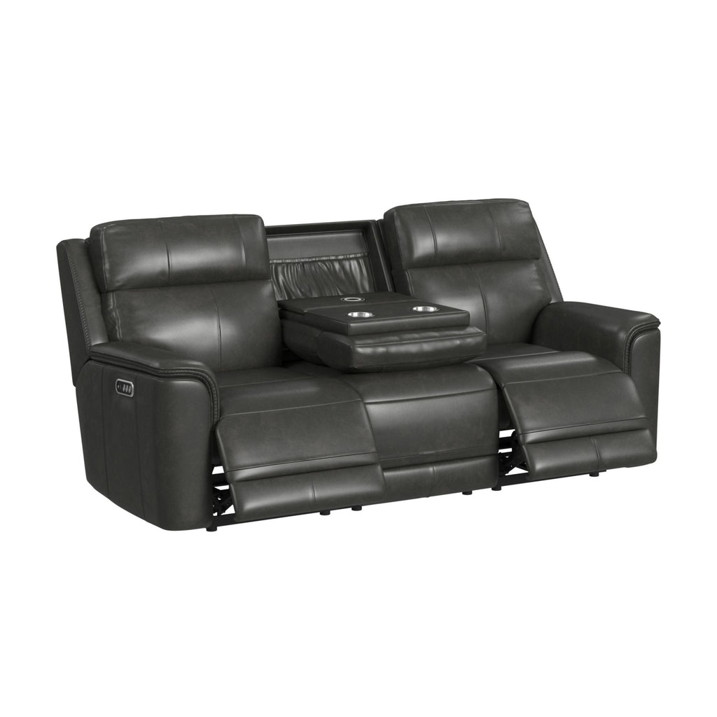 Mustang - Power Motion Sofa With Drop-Down Table, Wireless Charger, Power Headrest And Lumbar - Butternut