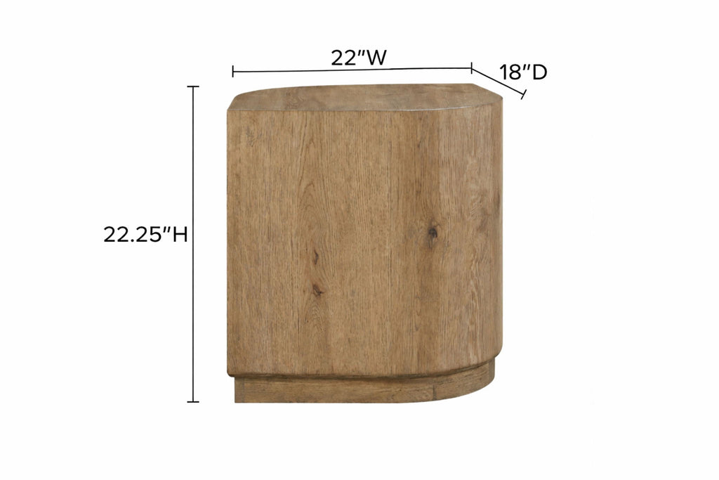 Pagosa Accent Table The Pagosa Accent Table embodies refined simplicity and organic elegance, showcasing the beauty of natural materials through thoughtful design. Crafted with English Knotty Oak Veneer, this piece highlights the intricate grain patterns and subtle texture of the wood, creating a warm, timeless appeal. Its rounded edges and softly curved silhouette lend a sculptural quality that complements both contemporary and transitional spaces. Compact yet substantial, the Pagosa Accent Table serves beautifully beside a chair, sofa, or bed — offering the perfect balance of function and artistry. A versatile piece that harmonizes with the entire Pagosa collection, this accent table brings understated sophistication to any room.