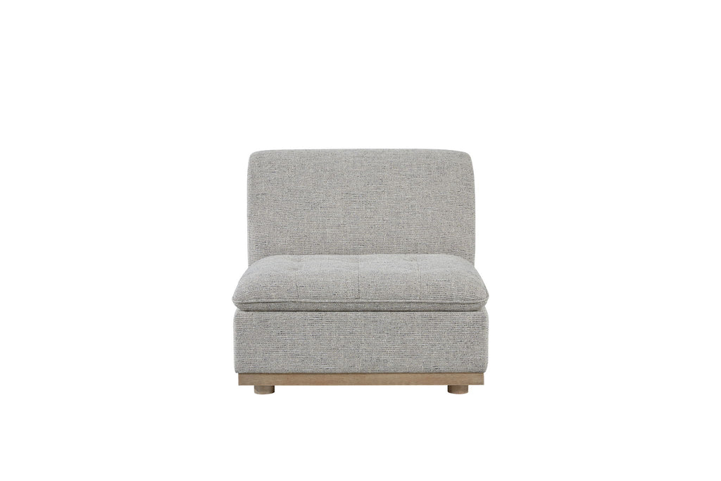 Pagosa Modular Armless Chair – Fabric Color: Dublin Create a seating arrangement that fits your space and lifestyle with the Pagosa Modular Armless Chair. Designed for ultimate flexibility, this versatile piece allows you to build the exact sofa or sectional you want by connecting as many modules as needed. Its clean, armless profile and tailored silhouette make it easy to customize layouts while maintaining a refined, cohesive look. Upholstered in the sophisticated Dublin fabric, the chair offers a soft, textured feel that complements both modern and transitional interiors. Comfort is engineered into every detail, featuring Dacron-wrapped cushions, 1.8 density foam, and sinuous spring construction for lasting support and resilience. A fully padded exterior enhances durability, ensuring the piece holds its shape and comfort through everyday use. Whether used as a standalone seat or as part of a larger sectional, the Pagosa Modular Armless Chair delivers comfort, durability, and design freedom.