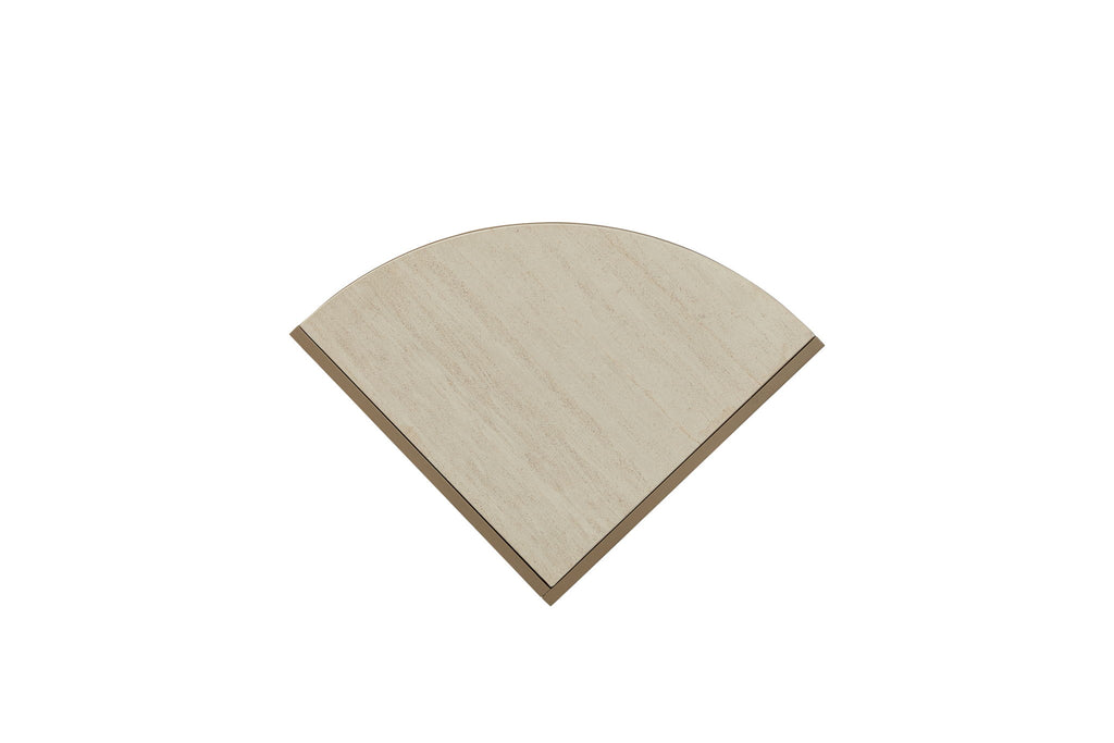 Trilogy Toffee Spice Quarter Bunching Tables Add versatility and style to your living space with the Trilogy Toffee Spice Quarter Bunching Tables. These uniquely designed quarter-circle tables feature a warm Toffee and Spice finish, offering a chic corner accent or the option to combine them into a full, circular centerpiece. The mixed-material design showcases a smooth top surface complemented by ample lower shelving, perfect for storage or display. Ideal for city living, these tables adapt to your needs with a modern, modular aesthetic, bringing both function and flair to your home. Dimensions: 21" L x 21" W x 18" H